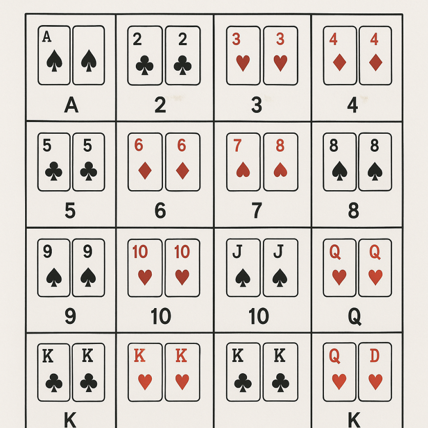 블랙잭 페어 조합 분류표 완전 정리: 스플릿, 더블다운, 스탠드 전략까지 총망라