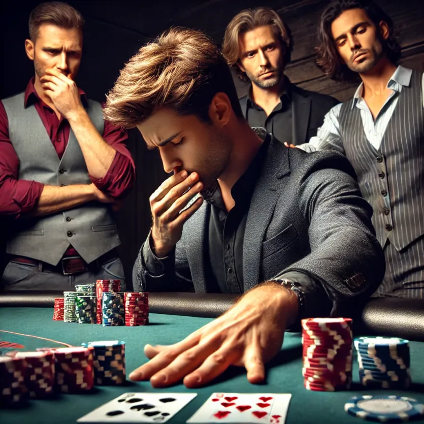 ❌ 화가 나서 상대의 큰 베팅에 무리하게 콜하는 **"틸트(Tilt)"**를 피해야 함